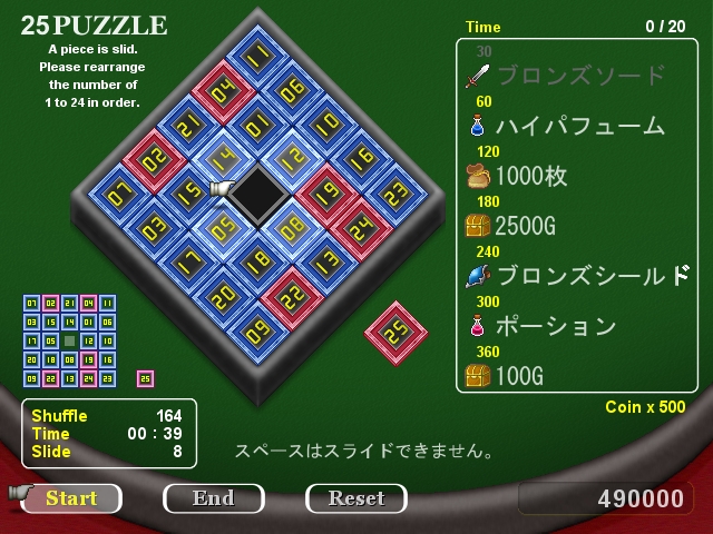 ピースをスライドさせて1から24までのピースを順番に並べ替えるパズル
