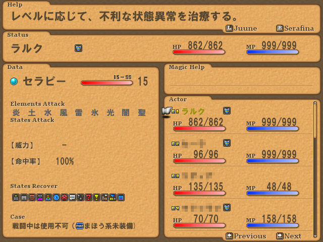これは、レベルが上がれば、治療できる状態異常が増えていくって具合にしてみた。