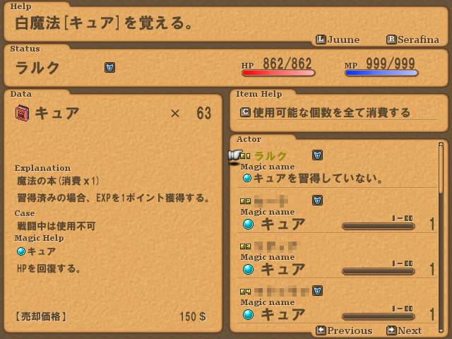 とりあえず、アイテム(魔法習得アイテム)を使って、