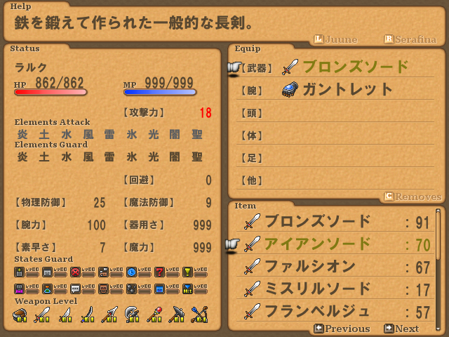 ←新しい、装備画面