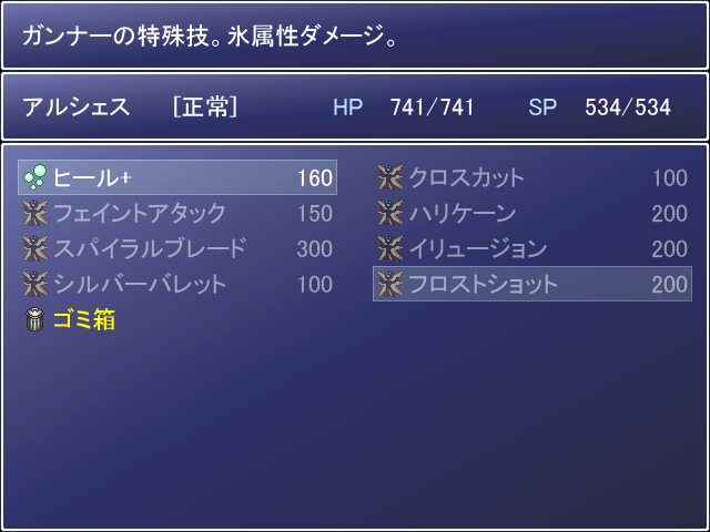 メニュー画面で『L』と『R』キーを押す場面は、『ステータス』、『装備』、『スキル』だろう。