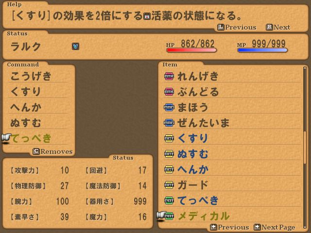 『くすり』・・・デフォルトの”アイテム”のことで、ポーションとか使う奴ね。