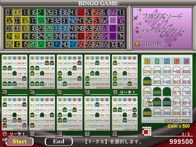 11人対戦型ビンゴ 10人はNPC 早くビンゴした順に景品が貰える。